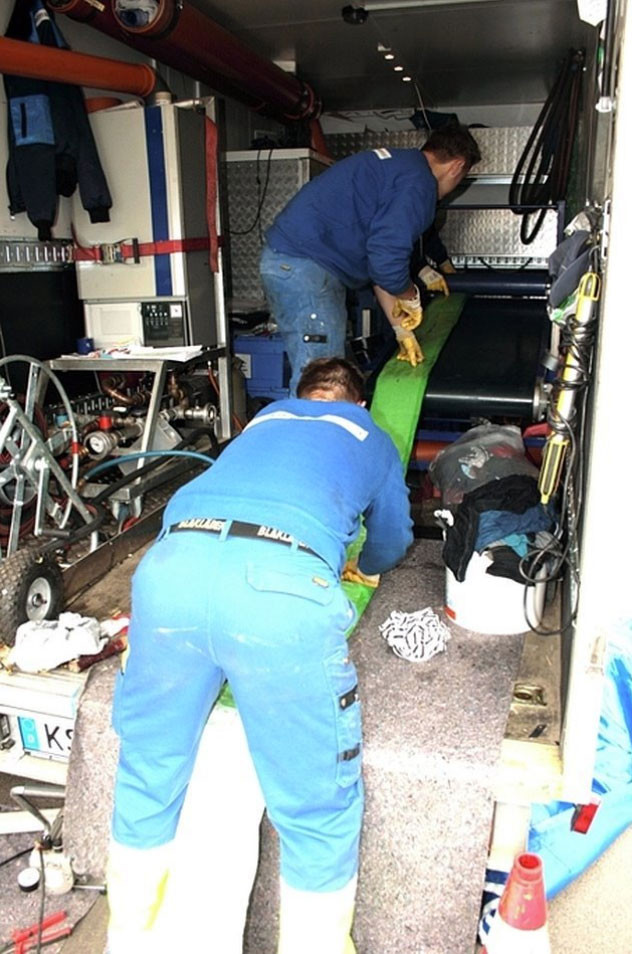 Bei der Renovierung des Zuleitungskanals mittels eines Schlauchliners wird ein in Harz getränkter Gewebeschlauch in den Kanal eingebracht. Dieser Schlauch wird unter Druck an die vorhandene Rohrwandung gepresst und zur Aushärtung gebracht.