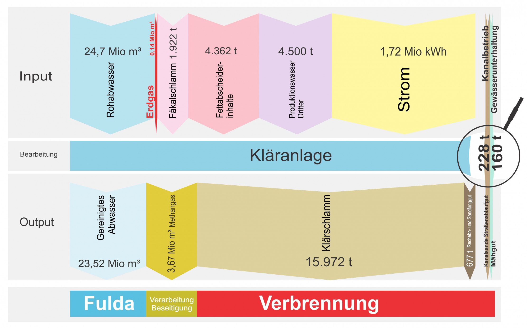 Im Jahre 2022 durchliefen die Kläranlage ca. 25 Millionen m³ Abwasser. Etwa die gleiche Menge Wasser wird geklärt und gereinigt über die Fulda dem natürlichen Wasserkreislauf zurückgeführt.