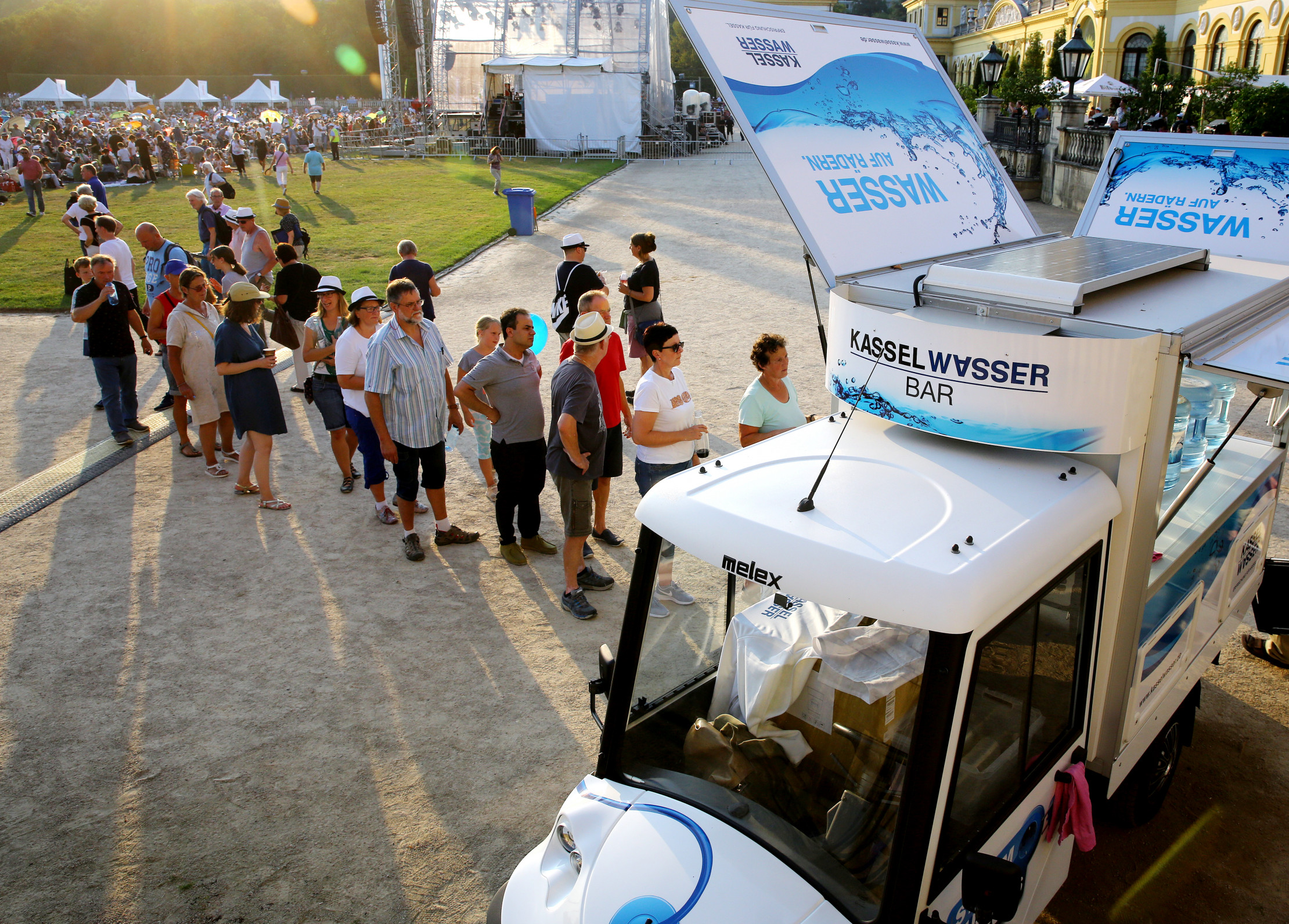 Das Klassik-Open-Air am 31. August vor der Orangerie war wieder ein voller Erfolg. Ein neuer Besucherrekord von rd. 40.000 Besuchern sprach für das wunderbare Angebot. Damit bei den hohen Temperaturen niemand durstig bleiben musste, haben wir unsere mobile Wasserbar "Wasser Auf Rädern" vorgefahren und über 8 Stunden ununterbrochen das kühle Nass kostenlos ausgegeben. Die Nachfrage war entsprechend groß.