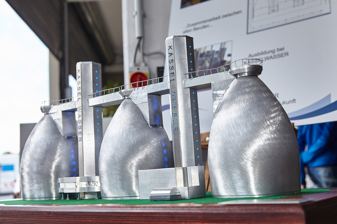 Die Auszubildenden unseres Betriebs haben in einem Gemeinschaftsprojekt ein Modell unserer Faultürme erstellt.