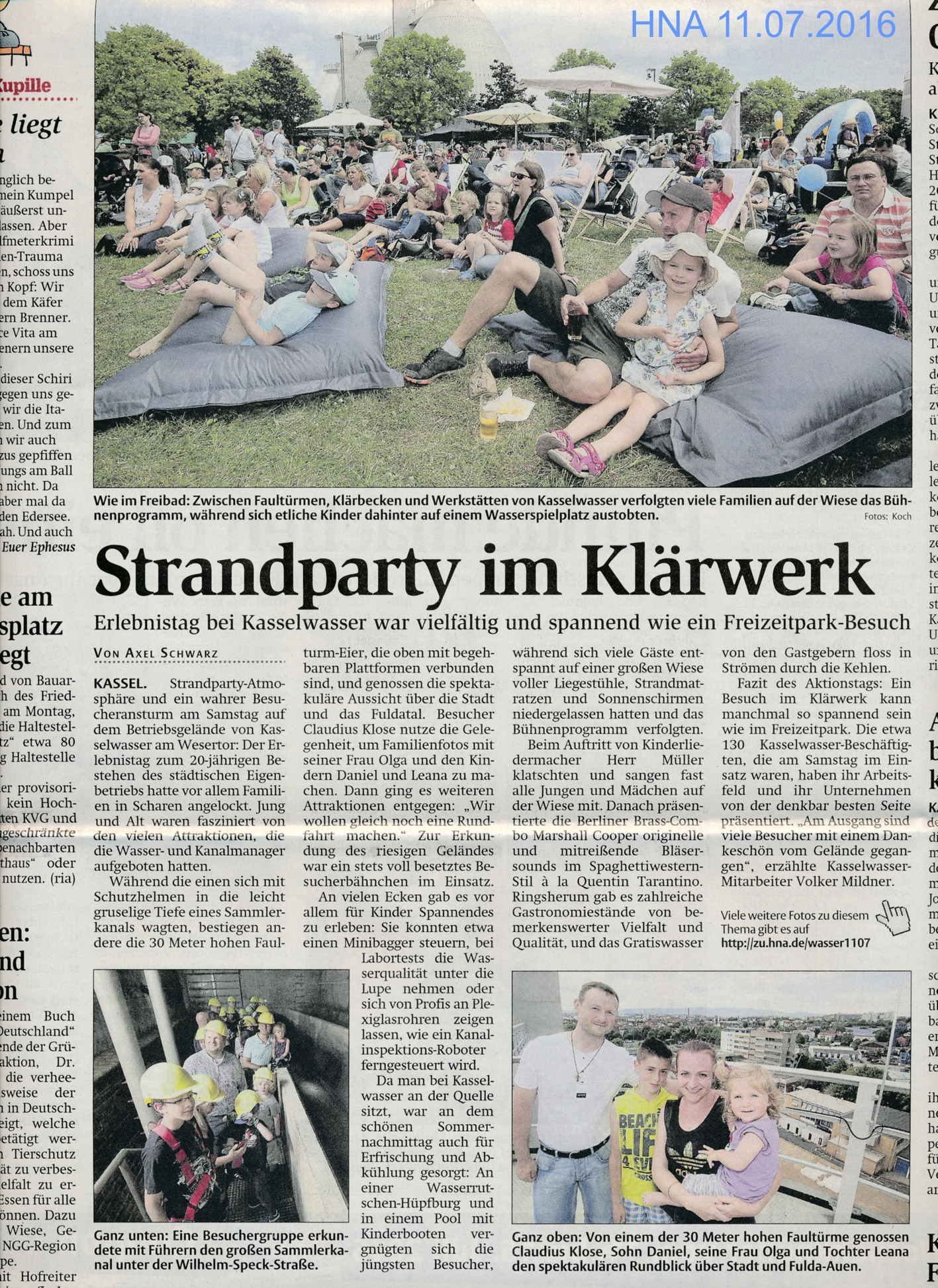 HNA-Bericht vom 11.07.2016 zum Tag der offenen Tür bei KASSELWASSER von Axel Schwarz