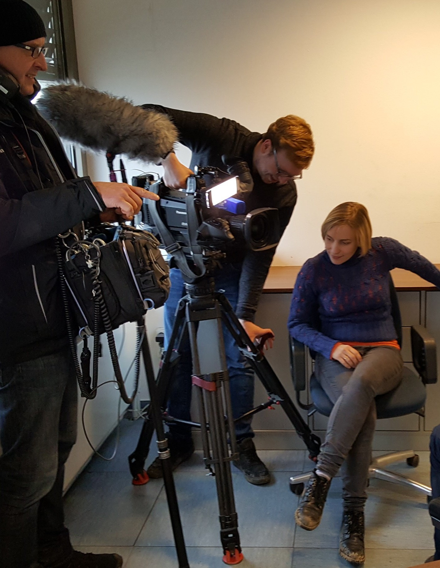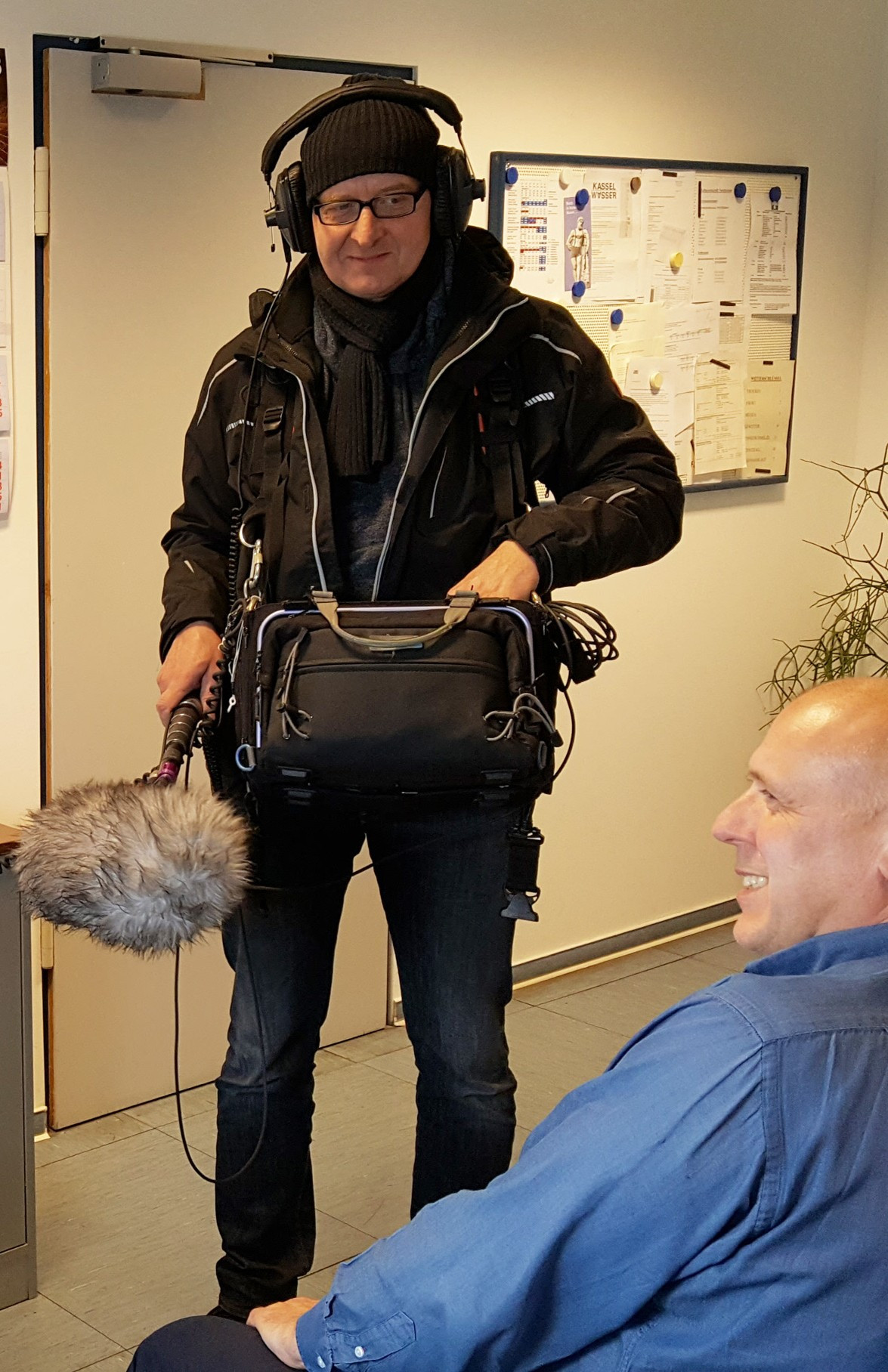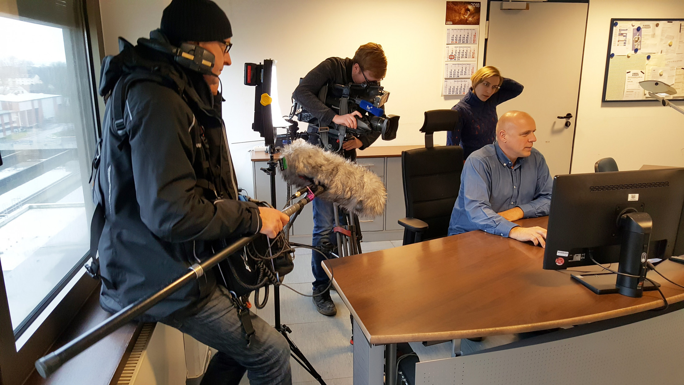 Der Kameramann Tobias Winge und der Tontechniker Jürgen Liebert, ebenfalls vom Hessischen Rundfunk, nahmen Bild und Ton zum Beitrag auf.